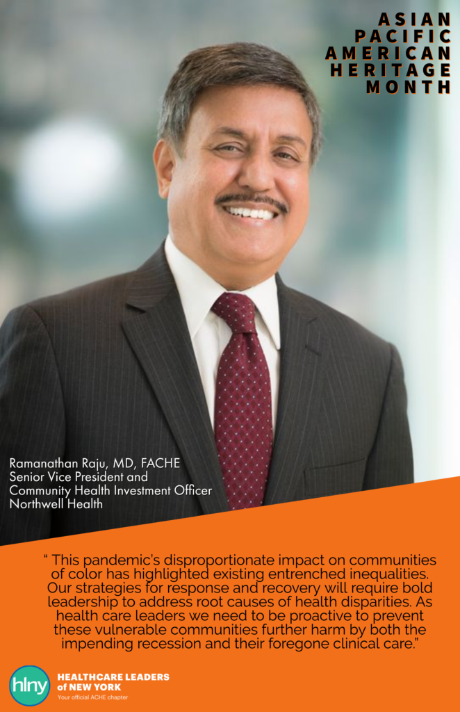 The HLNY Diversity Committee is excited to spotlight Dr. Ramanathan Raju for Asian Pacific American Heritage Month! We are proud to highlight our members making a difference both in their institutions and in the field of healthcare administration.