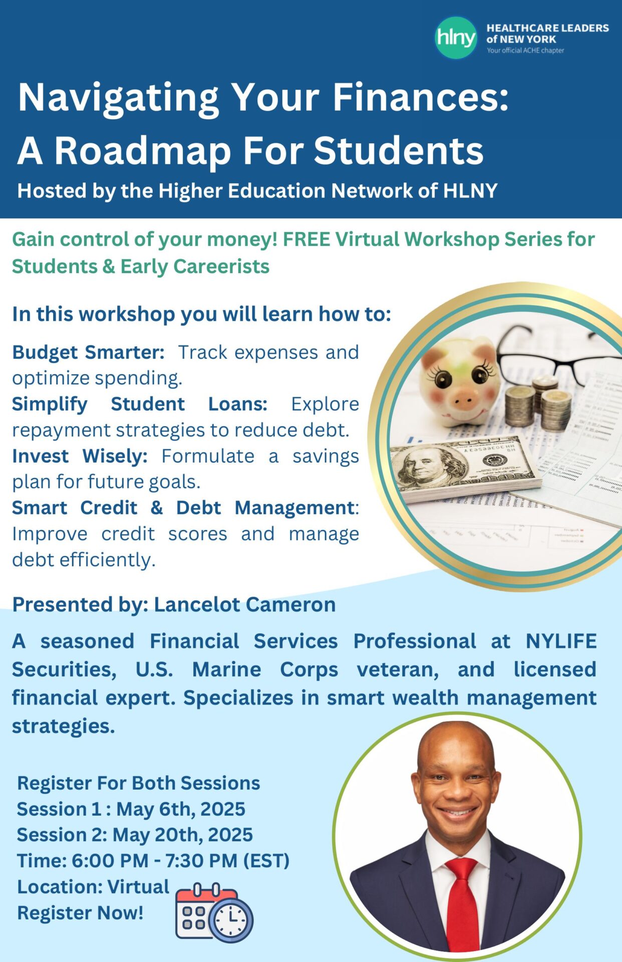 Join us for Session 12 of a valuable two-part virtual event, "Navigating Your Finances: A Roadmap for Students," proudly hosted by the Higher Education Network of HLNY. Led by Lancelot Cameron, a financial services expert from NYLIFE Securities, this series is designed to empower students and early careerists with crucial financial knowledge. Whether you're starting...