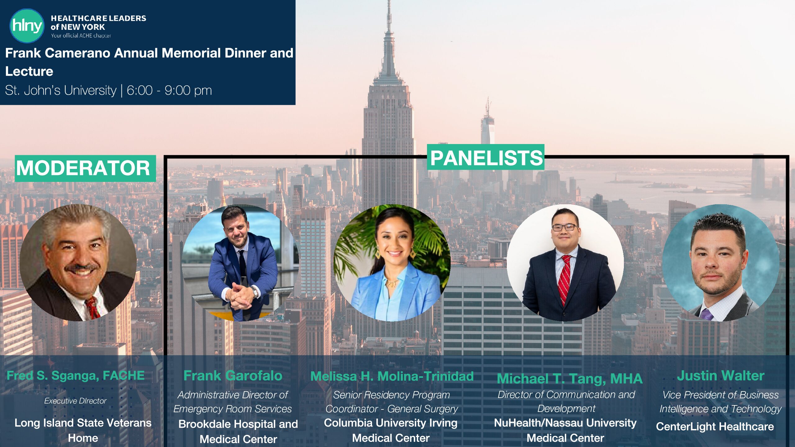 Please join us at our 2023 Annual Frank Camerano Memorial Dinner and Lecture honoring the legacy of Frank Camerano. His contributions to the healthcare industry, our community, and commitment to students and emerging professionals are immeasurable.