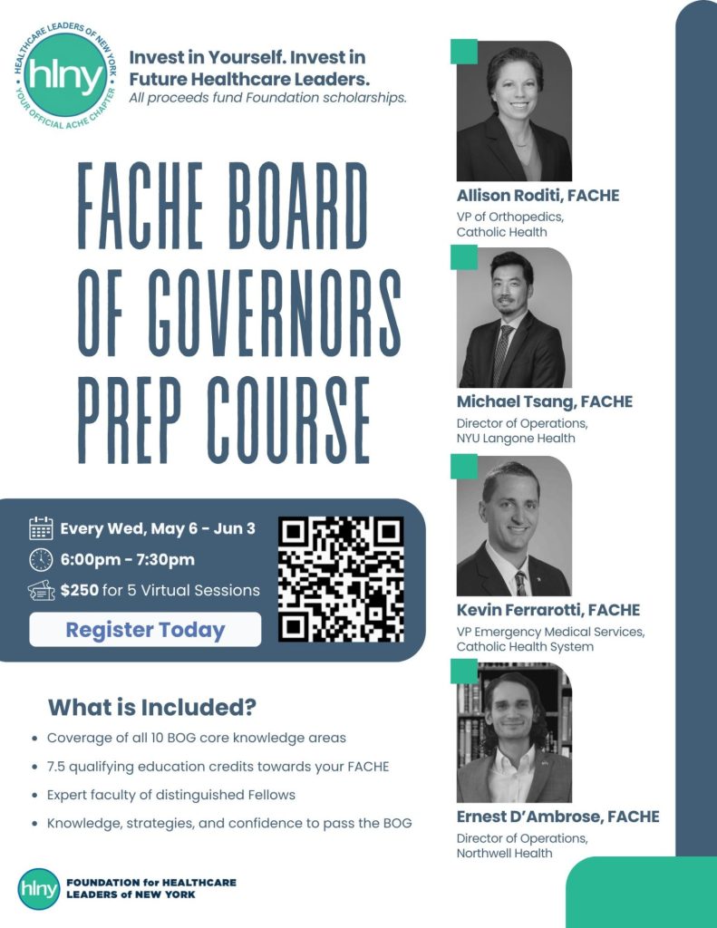 This initiative is grounded in a simple but powerful belief: those who have earned their FACHE credential are uniquely positioned to help guide the next generation of healthcare leaders. In a first-of-its-kind model, 100% of the proceeds from this course will be donated directly to the Foundation for Healthcare Leaders of New York. By registering for this course, your fee acts as a direct investment in our community, funding scholarships that remove financial barriers for emerging leaders.