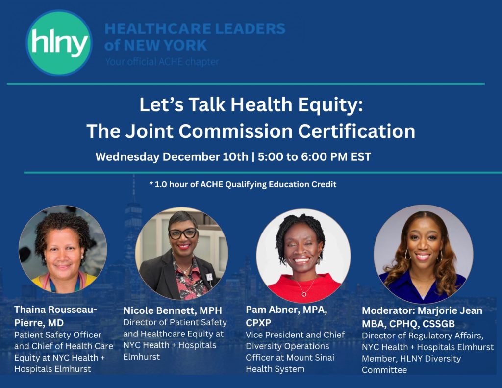 Join Healthcare Leaders of New York on Wednesday, December 10th, 5:00pm – 6:00pm for a focused conversation on advancing equitable care across our health systems.