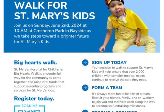 NEW DATE: Sunday June 2, 2024 at 9:00 am – Civic/Community Event for FACHE Eligible HLNY Members! Join us as we walk for St. Mary’s Kids