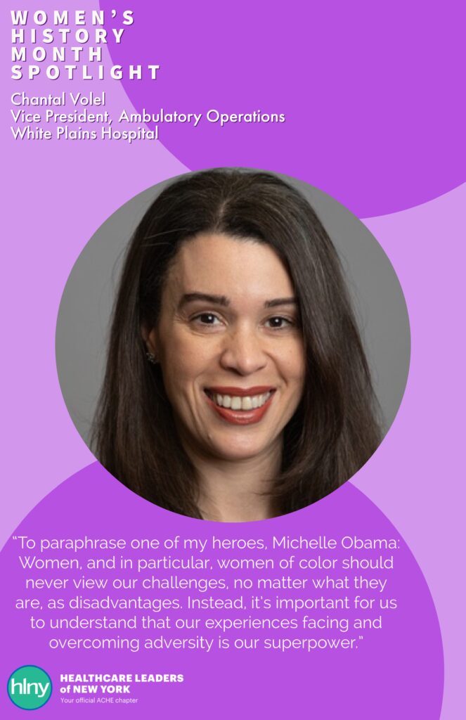 he Healthcare Leaders of New York (HLNY) Diversity Committee is excited to spotlight Chantal Volel, Vice President of Ambulatory Operations at White Plains Hospital for Women’s History Month. We are proud to highlight leaders making a difference both in the field of healthcare and their communities!